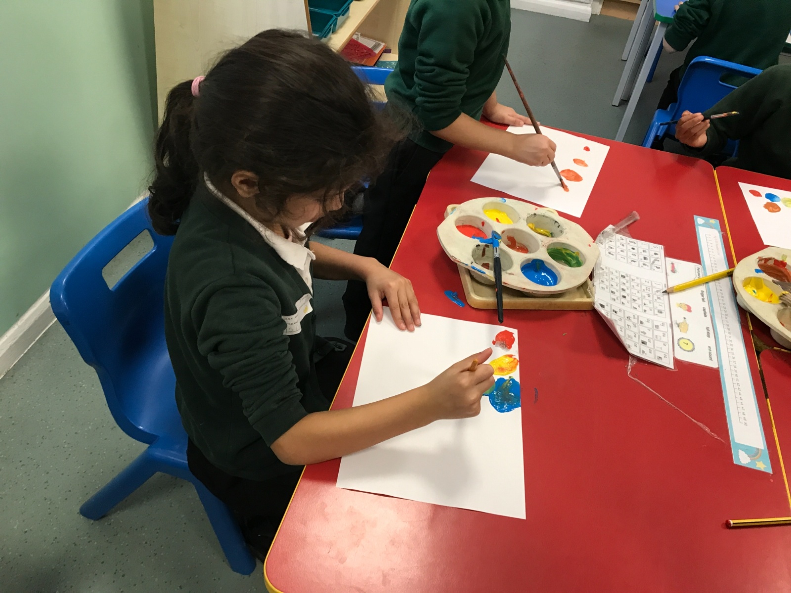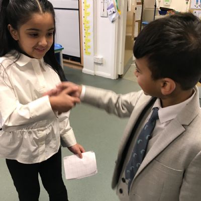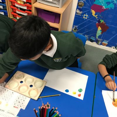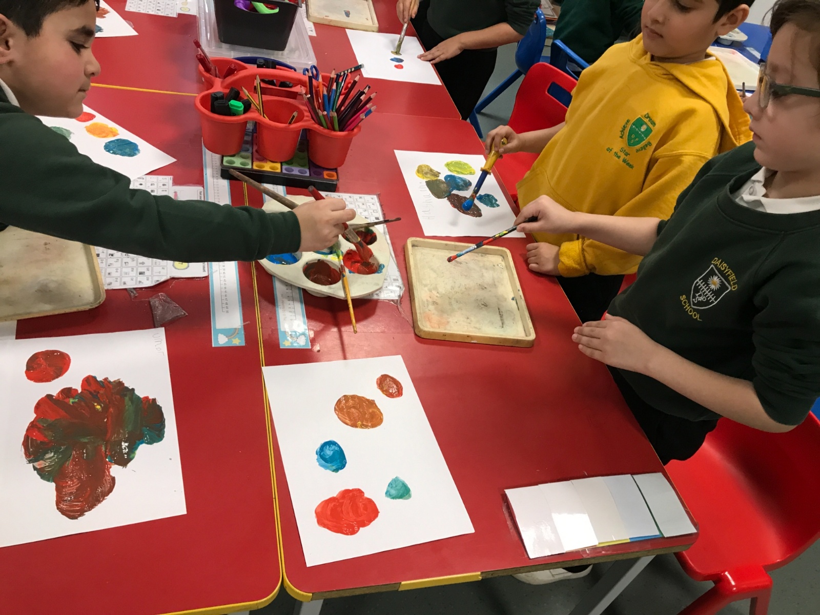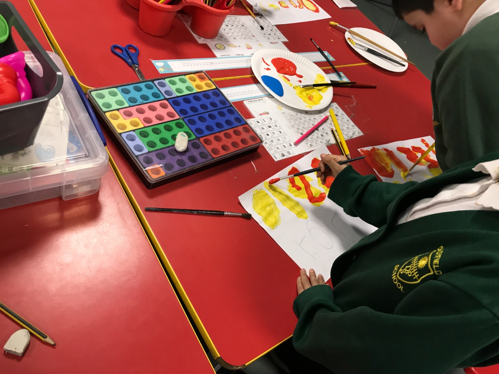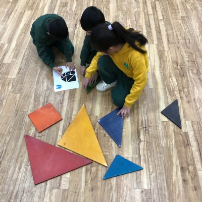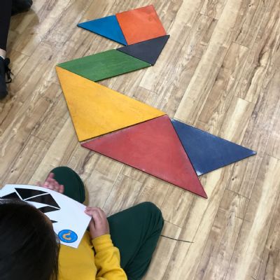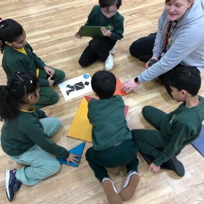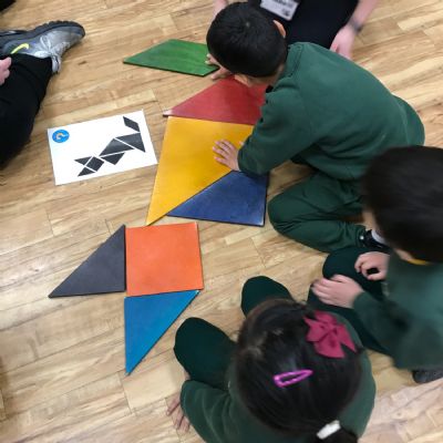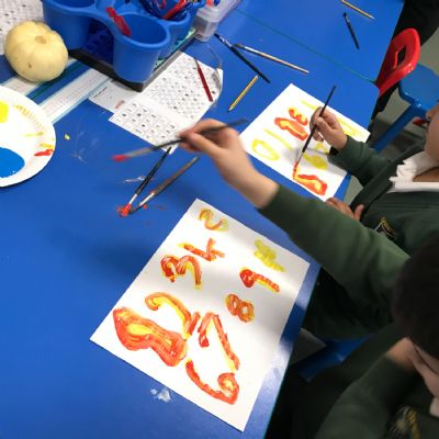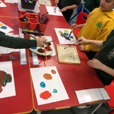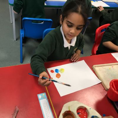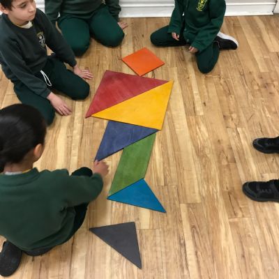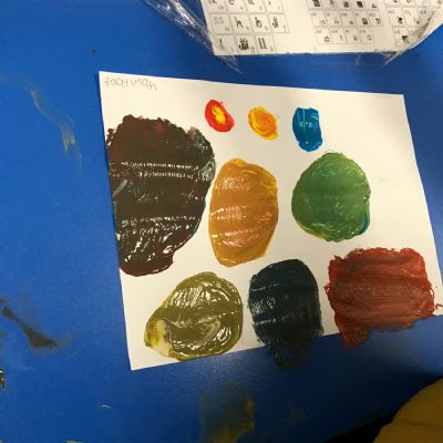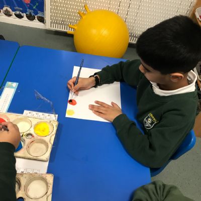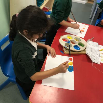 We took part in a Maths workshop where we had to work together to create different pictures using a range of shapes. For Little People Big Dreams day we took part in role-play to see if others would guess what the job was. In Art we have been learning about primary colours and mixing them to create secondary colours. We then applied our knowledge to complete a piece of artwork.