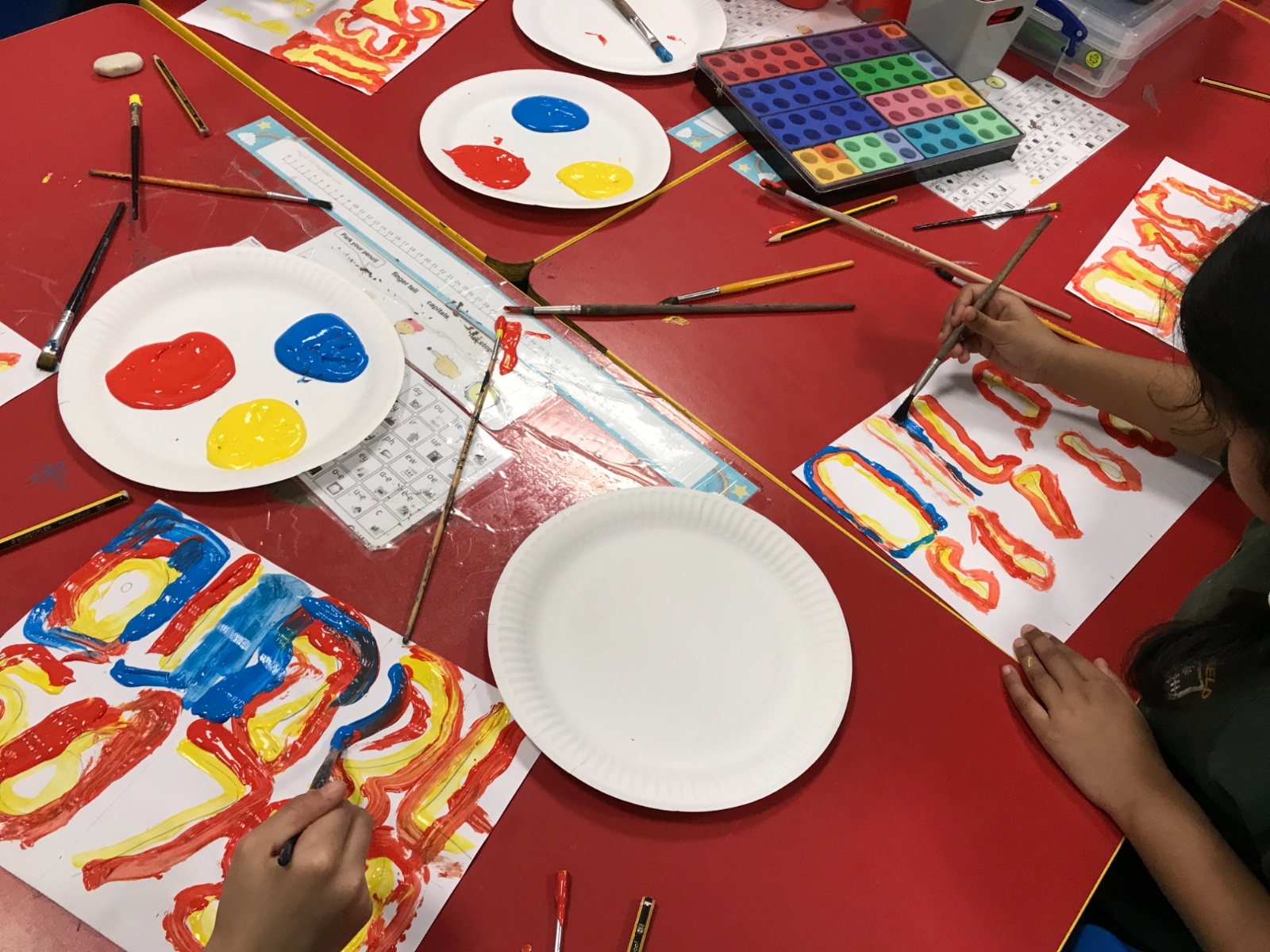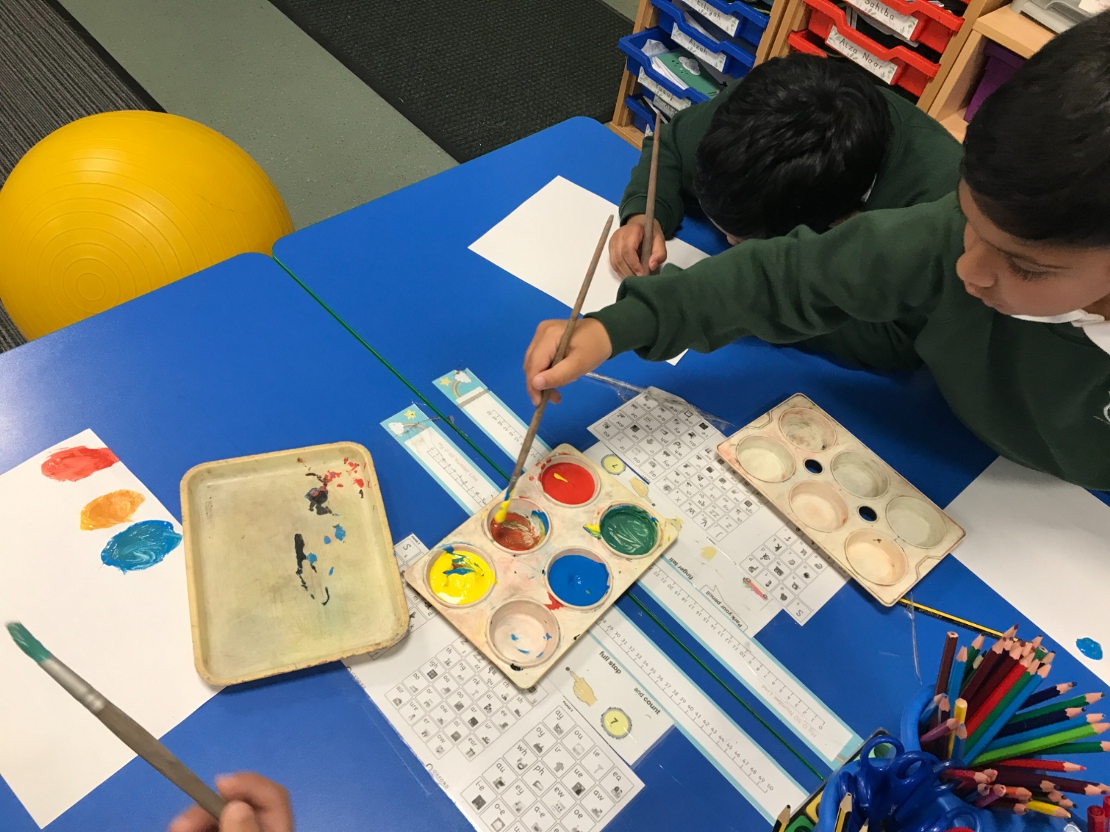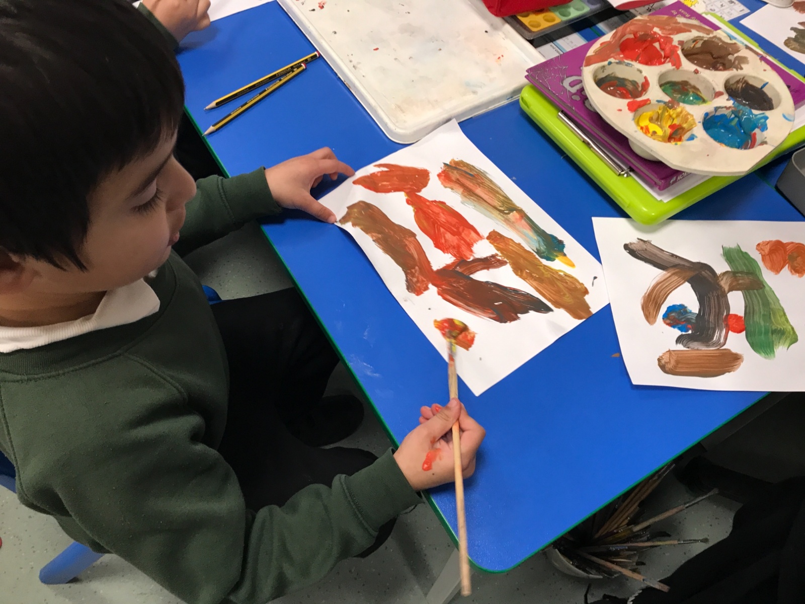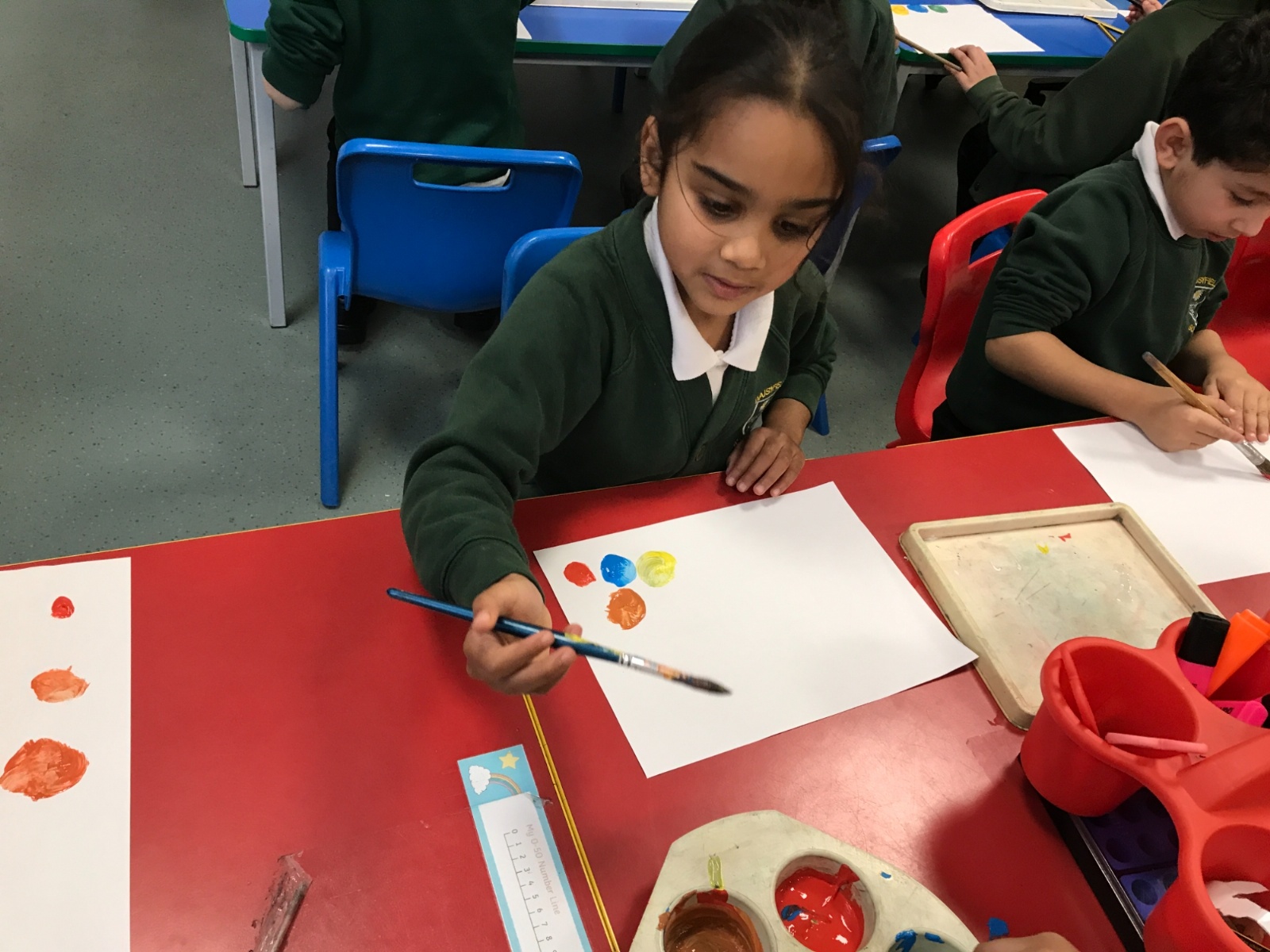 We took part in a Maths workshop where we had to work together to create different pictures using a range of shapes. For Little People Big Dreams day we took part in role-play to see if others would guess what the job was. In Art we have been learning about primary colours and mixing them to create secondary colours. We then applied our knowledge to complete a piece of artwork.